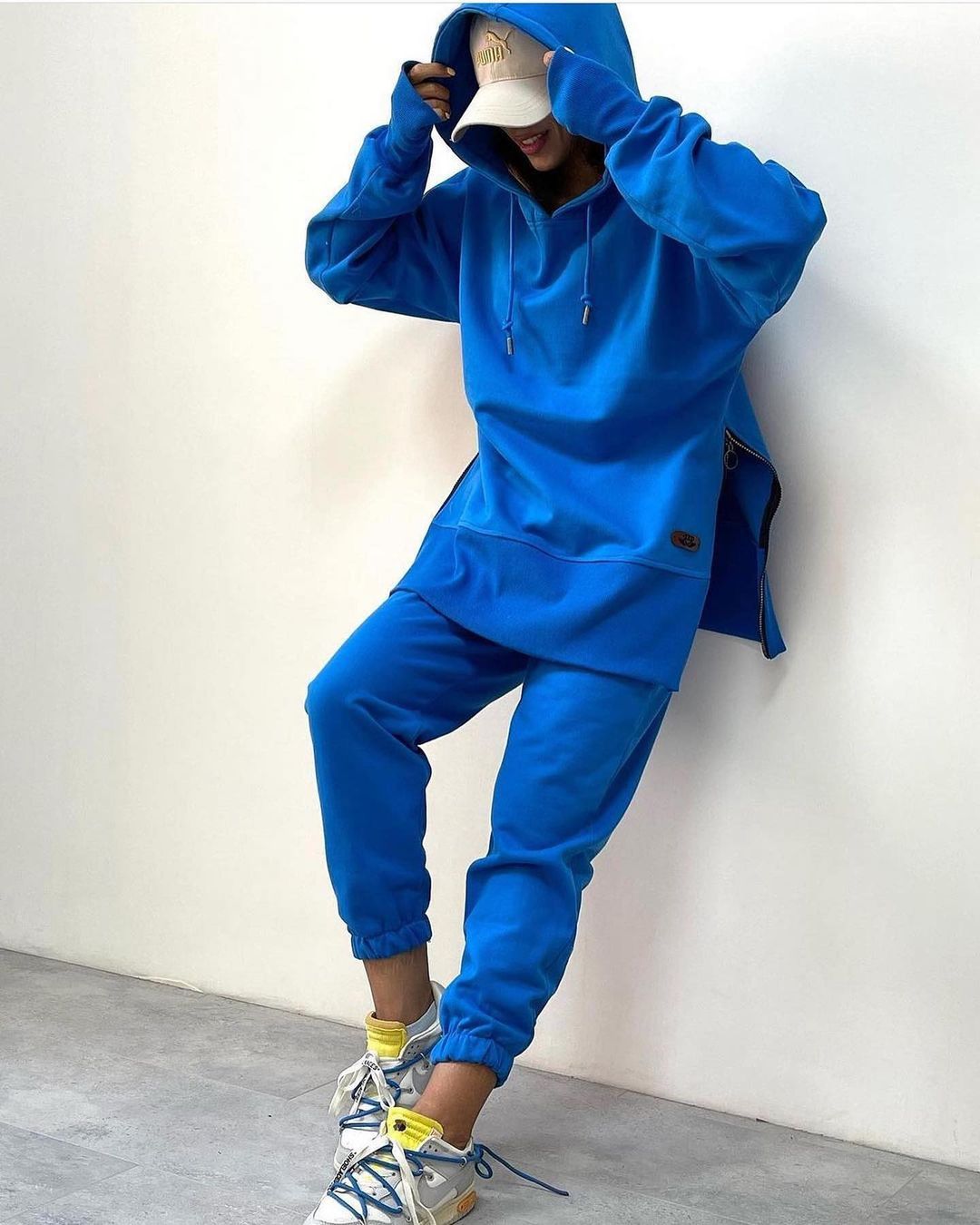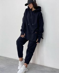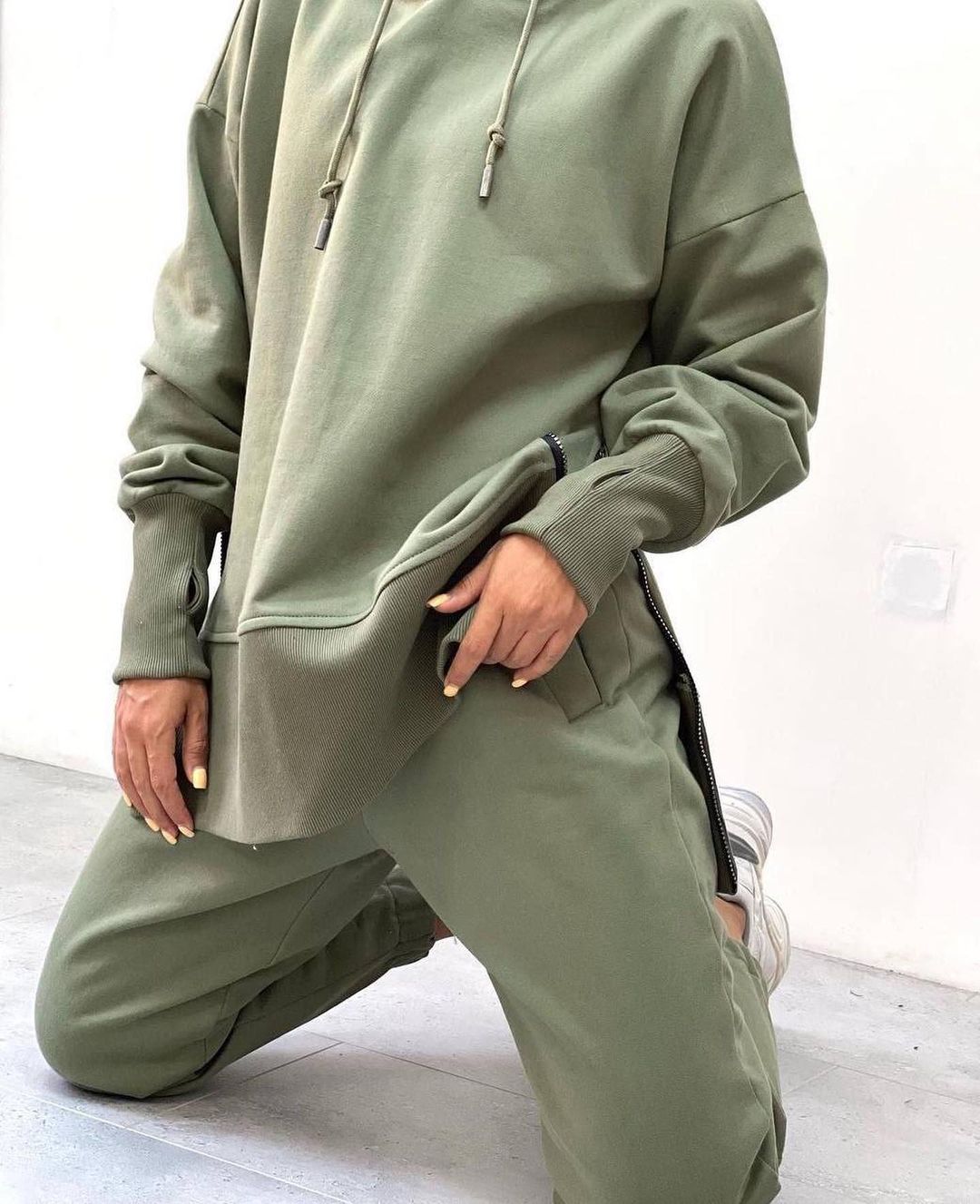 هودی کلاهدار فینگردار بغل زیپ و شلوار