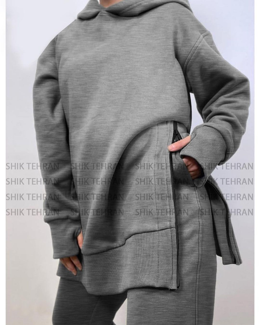 - هودی کلاهدار فینگردار بغل زیپ و شلوار