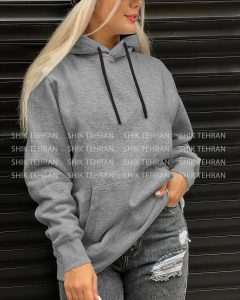 سویشرت کلاه طوسی زنانه