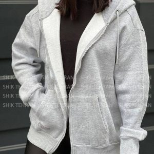 سویشرت کلاه طوسی زنانه